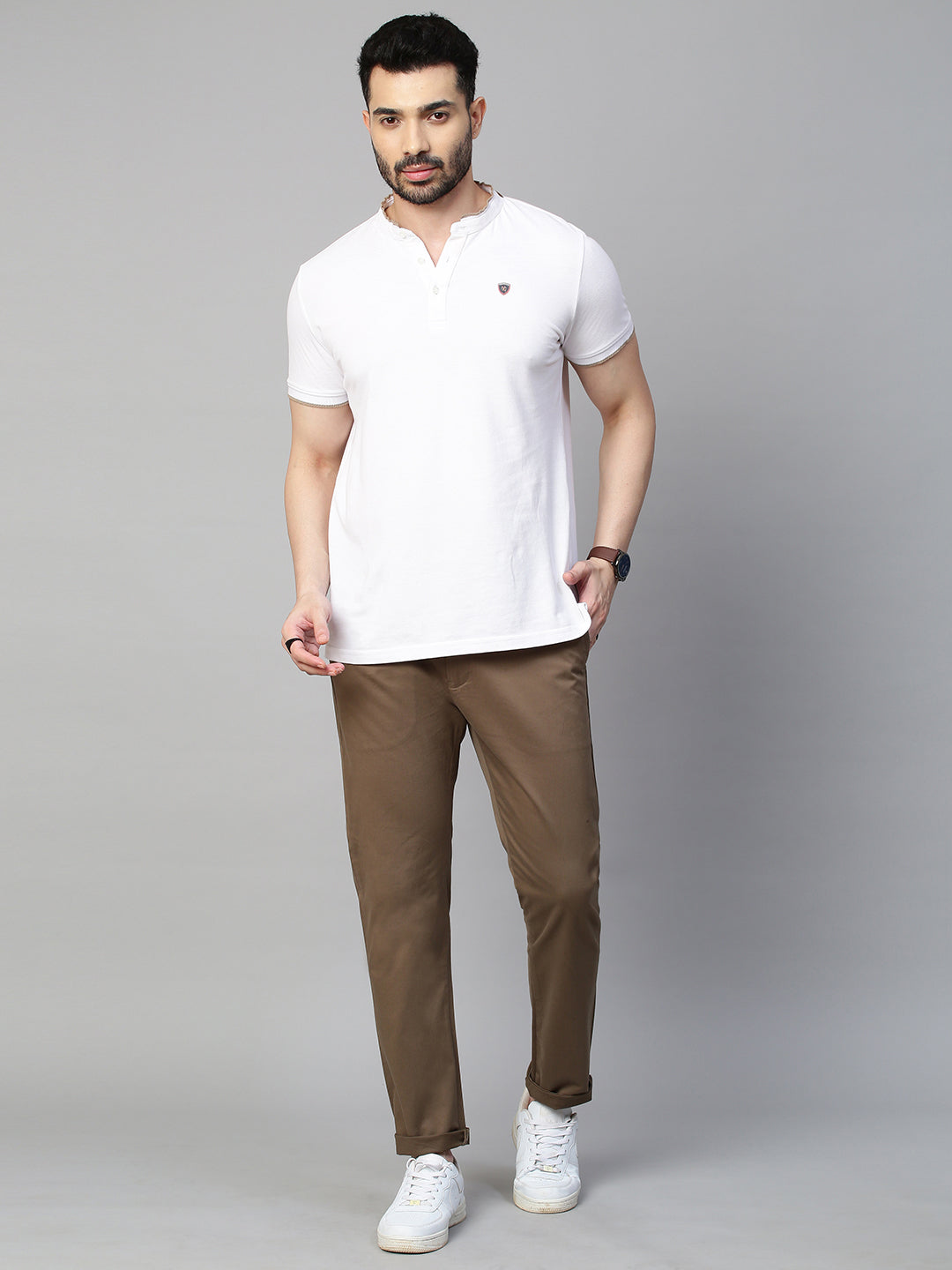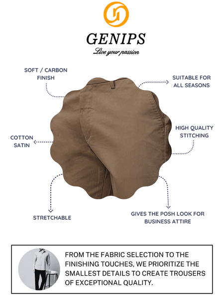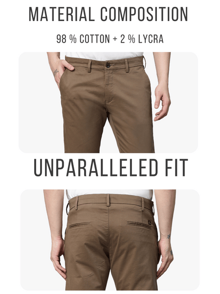 Pair your white canvas shoes with this Men's Brown Trousers from Genips. Made out of Cotton Stretch fabric ensuring comfort, breathability, and excellent stretchability all day. Offers a Mid Rise waist with a Slim Fit and a flat front for a sleek look that has been elevated with a Solid pattern. Features pockets, zipper, and button for closure. Match it with a T-shirt of your choice and a pair of canvas for an iconic look. Perfect for casual looks.
