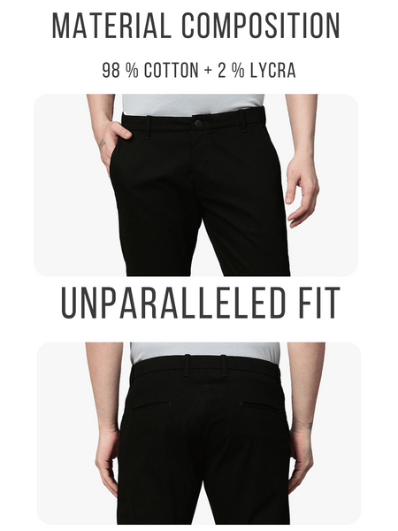 This Men's Black Trousers from Genips goes well white shirt for a classic look . Made out of Cotton Stretch fabric ensuring comfort, breathability, and excellent stretchability all day. Offers a Mid Rise waist with a Slim Fit and a flat front for a sleek look that has been elevated with a Solid pattern. Features pockets, zipper, and button for closure. Match it with a T-shirt of your choice and a pair of canvas for an iconic look. Perfect for casual looks.