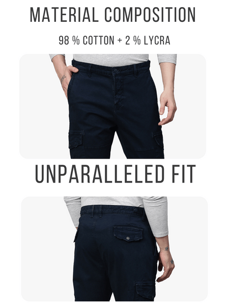 This Men's Carbon Blue Cargo from Genips defines modern fashion. Made out of Cotton Stretch fabric ensuring comfort, breathability, and excellent stretchability all day. Offers a Mid Rise waist with a cargo Fit and a flat front for a sleek look that has been elevated with a Solid pattern. Features pockets, zipper, and button & drawstring for closure. Match it with a T-shirt of your choice and a pair of canvas for an iconic look. Perfect for casual looks.