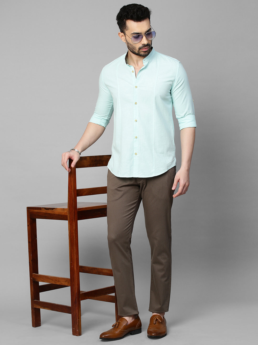 This Men's Green Trousers from Genips is perfect for formal shirts. Made out of Cotton Stretch fabric ensuring comfort, breathability, and excellent stretchability all day. Offers a Mid Rise waist with a Slim Fit and a flat front for a sleek look that has been elevated with a Print pattern. Features pockets, zipper, and button for closure. Match it with a T-shirt of your choice and a pair of canvas for an iconic look. Perfect for casual looks.