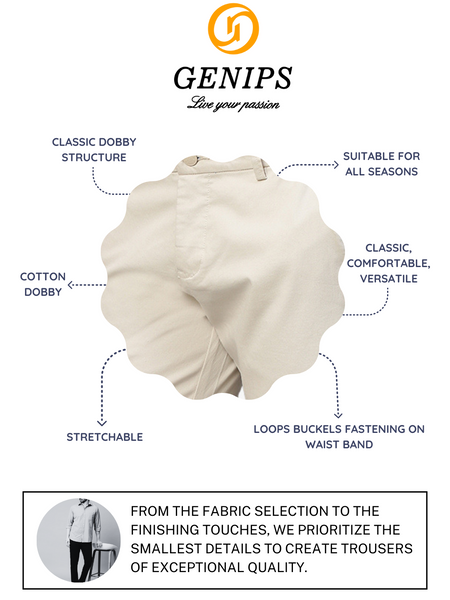 This Men's Light Cream Trousers from Genips is a perfectly made trouser. Made out of Cotton Stretch fabric ensuring comfort, breathability, and excellent stretchability all day. Offers a Mid Rise waist with a Slim Fit and a flat front for a sleek look that has been elevated with a Solid pattern. Features pockets, zipper, and button for closure. Match it with a T-shirt of your choice and a pair of canvas for an iconic look. Perfect for casual looks.