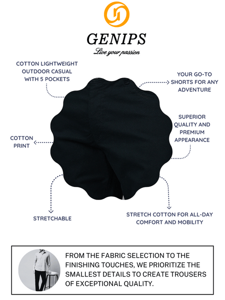 Introducing the GENIPS Men's Blue Cotton Lycra Printed Shorts, the perfect combination of comfort, style, and versatility for fashion-conscious men. Made from high-quality cotton lycra fabric, these shorts offer an ultra-comfortable fit with excellent stretchability. The regular fit and above-knee length add a contemporary touch to your casual wardrobe, while the captivating printed pattern showcases your unique fashion sense. Whether you're heading to the beach, meeting friends, or simply enjoying a relaxed day out, these shorts provide the ideal blend of comfort and style. Designed for durability, they withstand regular wear and maintain their shape and color, ensuring long-lasting use. Suitable for various occasions, including casual outings, summer parties, or everyday wear, these shorts offer versatility and effortless style. Trust in the GENIPS brand's commitment to quality, and elevate your wardrobe with these fashionable and comfortable men's shorts.