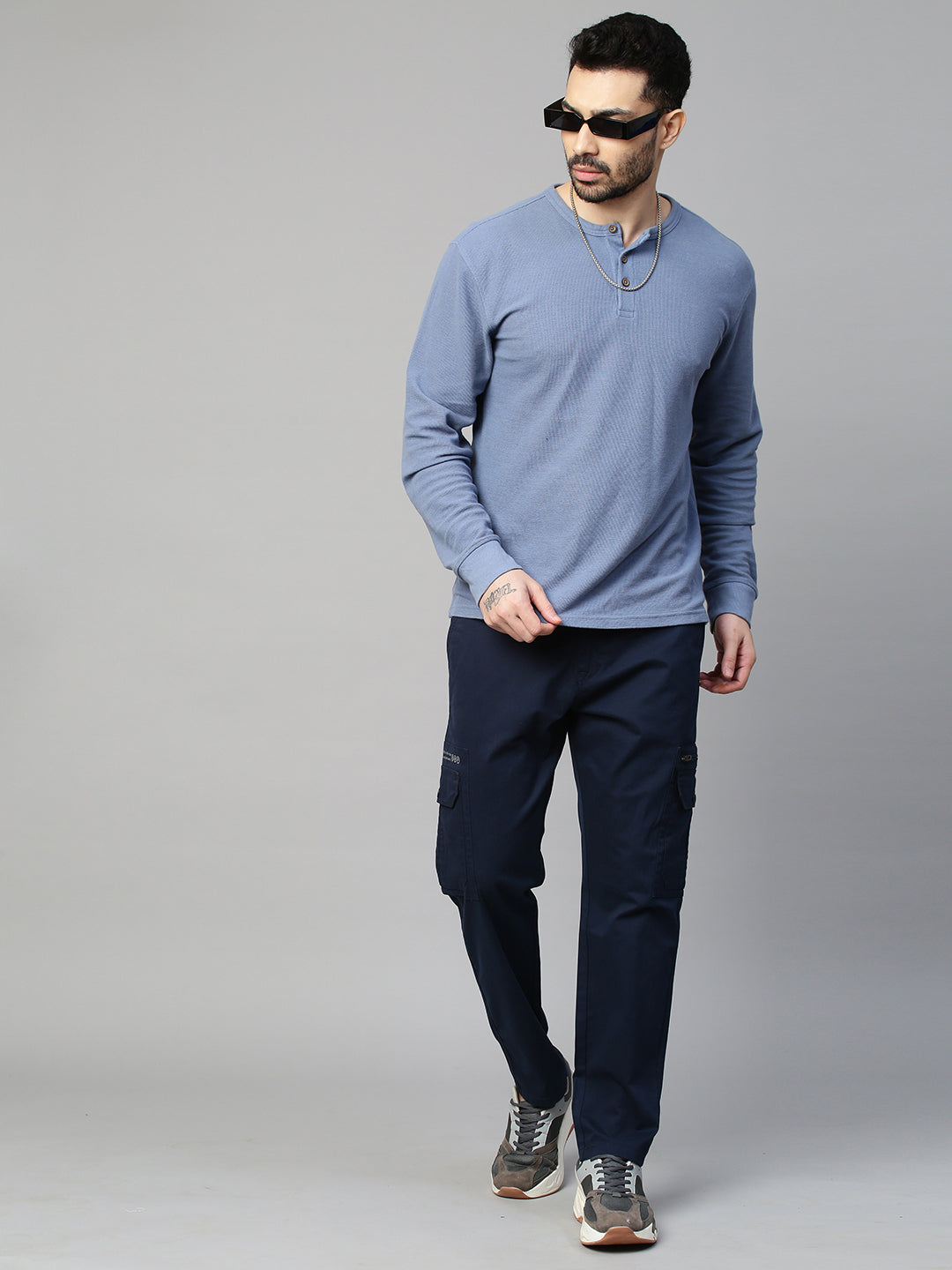 This Men's Navy Cargo from Genips is popular among college students. Made out of Cotton Stretch fabric ensuring comfort, breathability, and excellent stretchability all day. Offers a Mid Rise waist with a cargo Fit and a flat front for a sleek look that has been elevated with a Solid pattern. Features pockets, zipper, and button & drawstring for closure. Match it with a T-shirt of your choice and a pair of canvas for an iconic look. Perfect for casual looks.