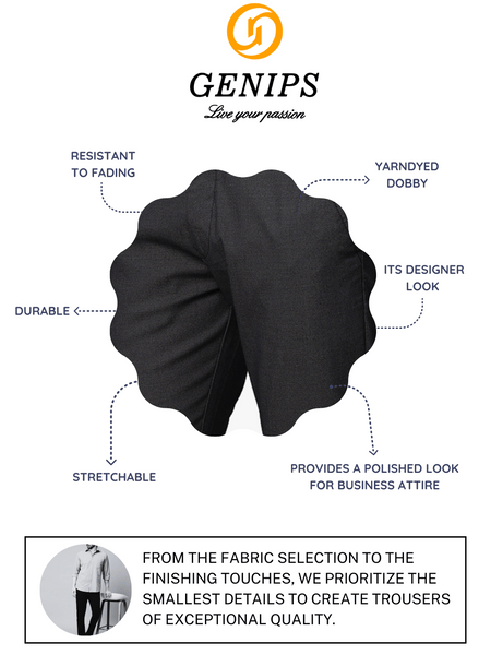 This Men's Navy Trousers from Genips is perfect with your T-shirts. Made out of Cotton Stretch fabric ensuring comfort, breathability, and excellent stretchability all day. Offers a Mid Rise waist with a Slim Fit and a flat front for a sleek look that has been elevated with a Self Design pattern. Features pockets, zipper, and button for closure. Match it with a T-shirt of your choice and a pair of canvas for an iconic look. Perfect for casual looks.