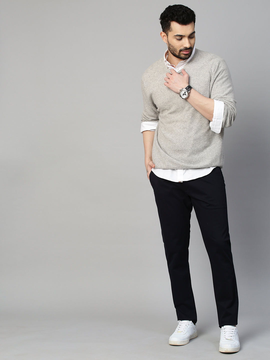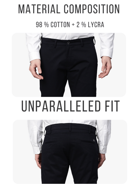 Pair your white shirt with this Men's Navy Trousers from Genips. Made out of Cotton Stretch fabric ensuring comfort, breathability, and excellent stretchability all day. Offers a Mid Rise waist with a Slim Fit and a flat front for a sleek look that has been elevated with a Solid pattern. Features pockets, zipper, and button for closure. Match it with a T-shirt of your choice and a pair of canvas for an iconic look. Perfect for casual looks.