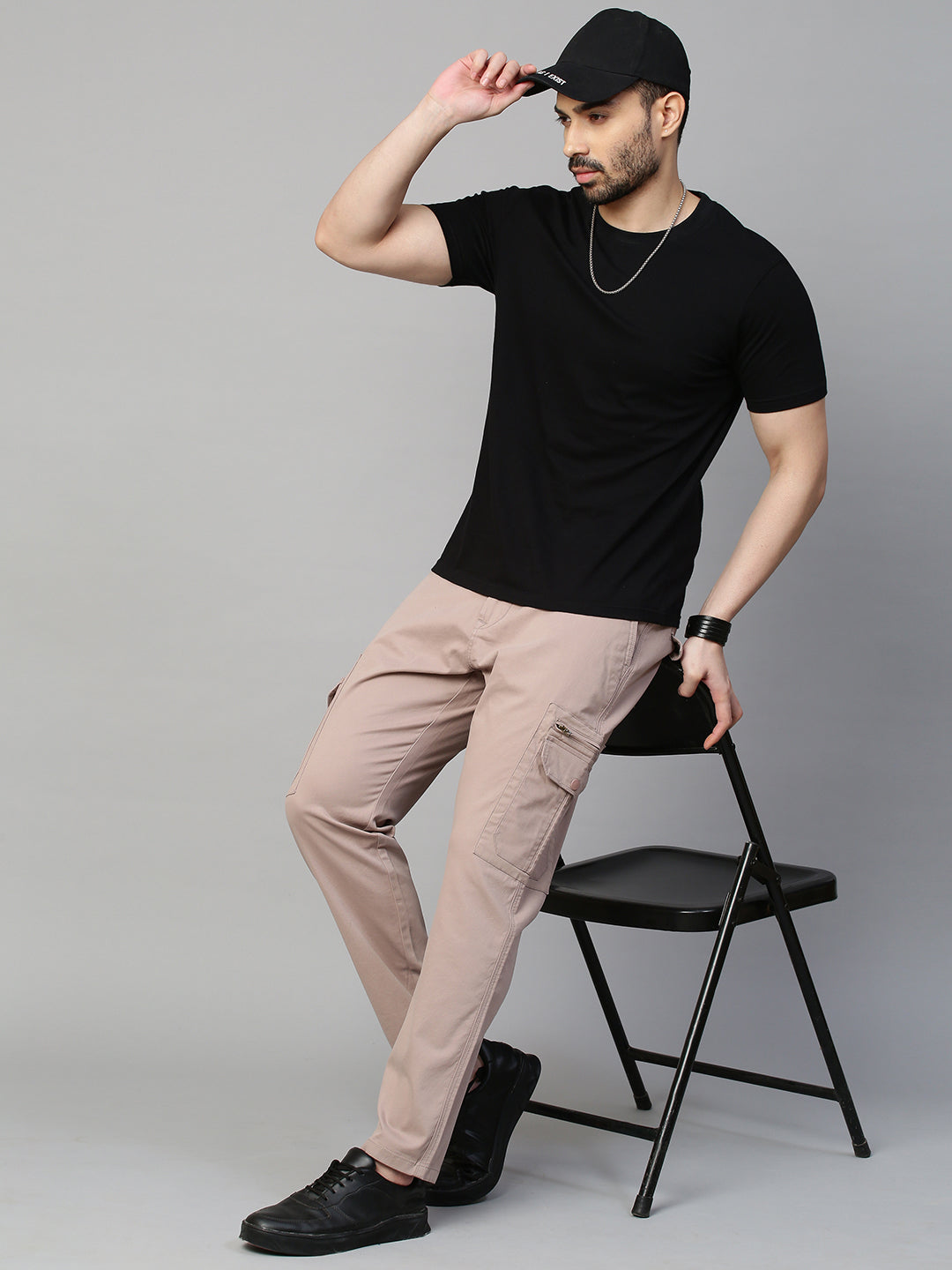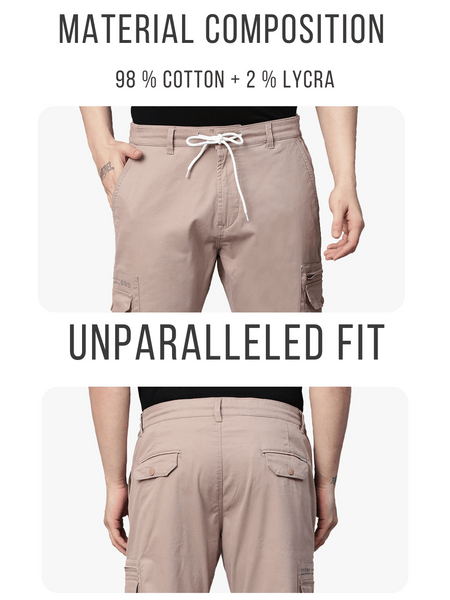 This Men's Onion Cargo from Genips comes with unique shade of pink. Made out of Cotton Stretch fabric ensuring comfort, breathability, and excellent stretchability all day. Offers a Mid Rise waist with a cargo Fit and a flat front for a sleek look that has been elevated with a Solid pattern. Features pockets, zipper, and button & drawstring for closure. Match it with a T-shirt of your choice and a pair of canvas for an iconic look. Perfect for casual looks.