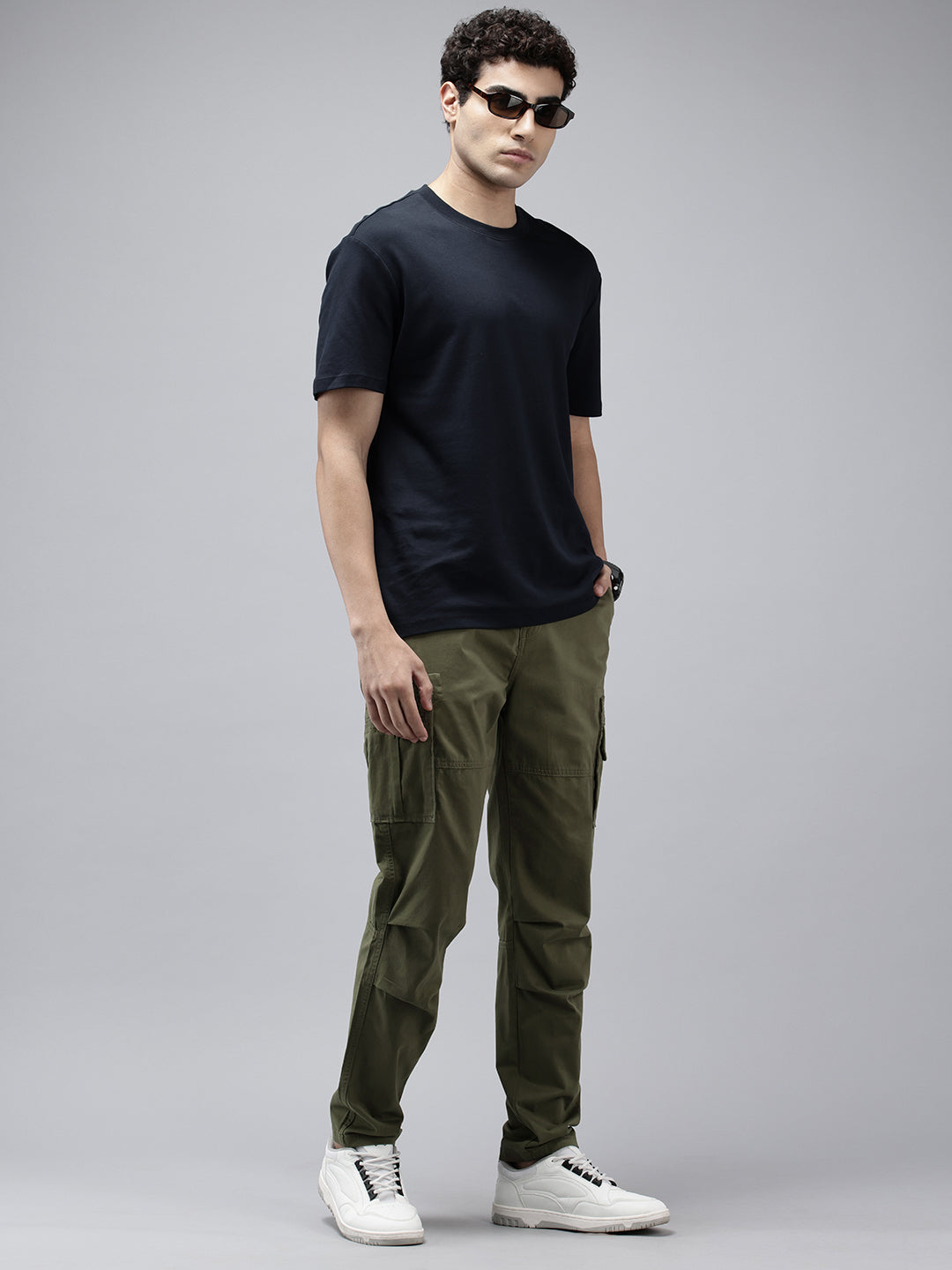 GENIPS Men's Dark Olive Solid Cotton Cargo Trousers offer the perfect balance of functionality and style for the modern man. Crafted from premium breathable cotton fabric, these full-length cargo trousers provide a comfortable regular fit with a flattering mid-rise waist. The solid Dark Olive color gives them a clean, versatile look, ideal for casual outings, travel, and outdoor activities. Equipped with 7 spacious and secure pockets, these trousers offer ample storage for all your essentials, combining utility with rugged style. Easy to maintain with machine wash care, they ensure long-lasting durability and comfort, making them a staple in any casual or adventure wardrobe.